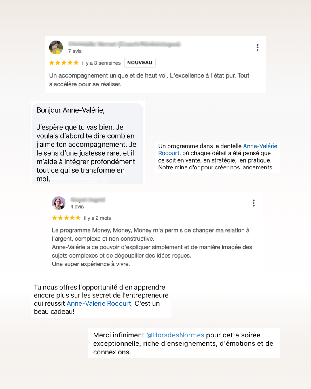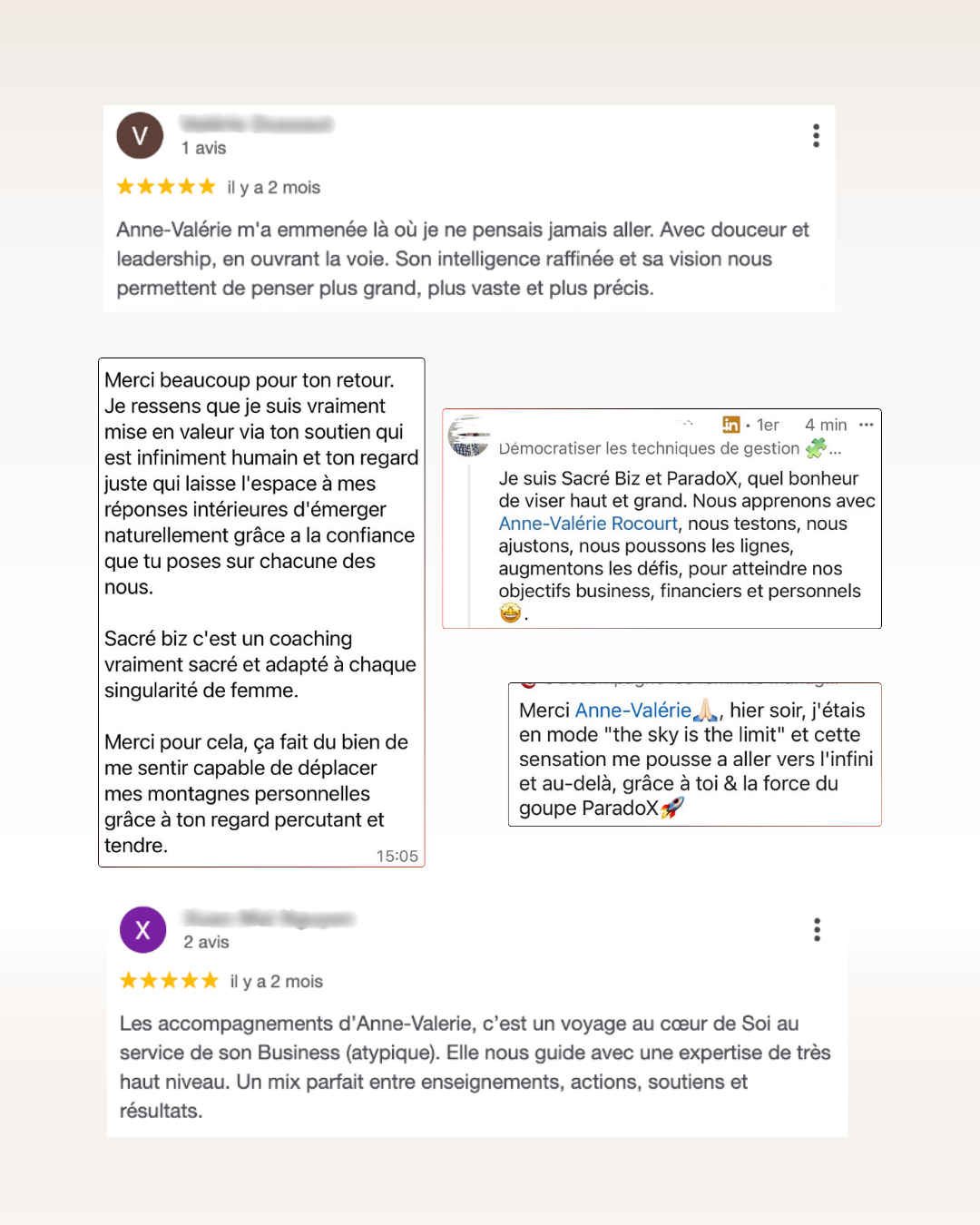 Depuis la création de ma première entreprise en 2010, je n'ai cessé de me former, afin d'offrir toujours le plus haut niveau d'excellence (coach certifiée, diplômes en psychologie positive, neurosciences, hypnose, PNL...). Je côtoie aussi les entrepreneurs les plus influents, en francophonie et aux US, afin d'être toujours à la pointe dans le champ du business.